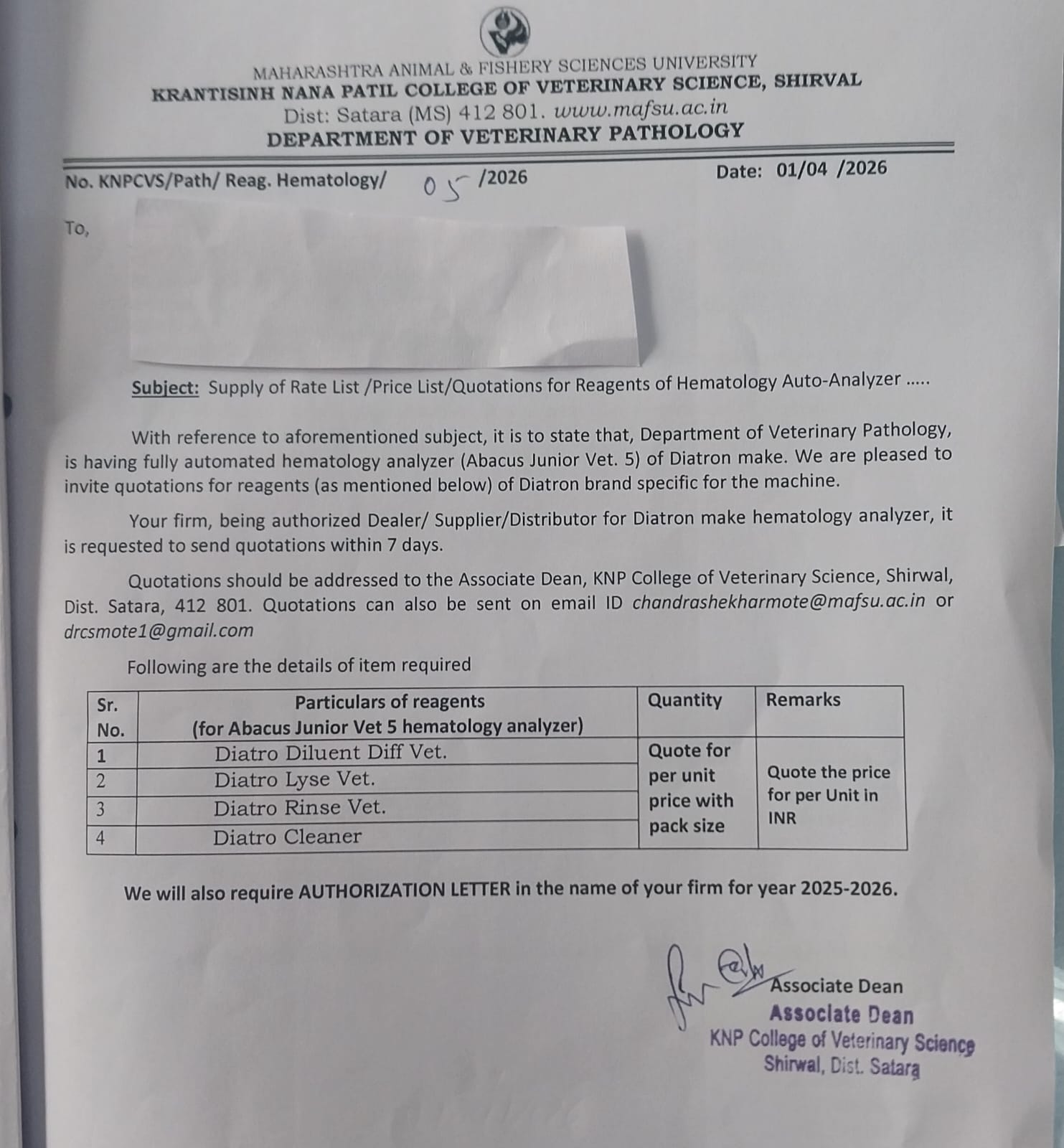 Krantisinh Nana Patil College of Veterinary Science, Shirwal is one of the premier institutes of Maharashtra Animal and Fishery Sciences University, Nagpur and is committed to extend its services in the area of animal husbandry and veterinary science for the benefit of almost 10 districts of western and northern parts of Maharashtra state.